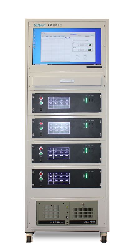 组件长期在高电压工作,在盖板玻璃、封装材料、边框之间存在漏电流,大量电荷聚集在电池片表面,使得电池片表面的钝化效果恶化,导致填充因子、短路电流、开路电压降低,使组件性能低于设计标准; PID 测试目的为验证组件经受高强度电压性能变化的能力。昇和达电子(苏州)有限公推出的 PID 测试系统满足标准 IEC61215-2 MQT21, 简洁、高效、使用便捷灵活,极大地方便用户进行 PID 的测试实验。